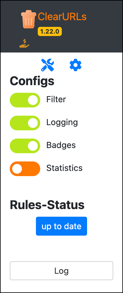ClearURLs offers a limited amount of customization options. Open the ClearURLs extension menu and select the Settings icon, and can choose to allow referral marking trackers, disable hyperlink auditing (a form of tracking that will enable sites to determine what pages have been clicked on), filter ETags, etc.
