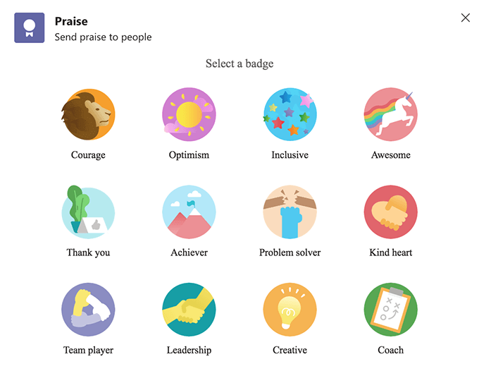 Praising is a good way to recognize your team members’ work and the Teams app has a built-in option to help you do it. It lets you send praise badges to your team members, and there are various badges to choose from.
