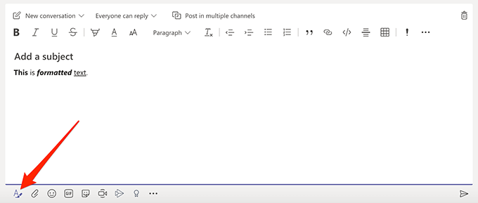 By default, the messages you write in your channels and other chats in the app lack formatting. However, there are options to stylize and format your text if you want, and you can access those from within the text box.