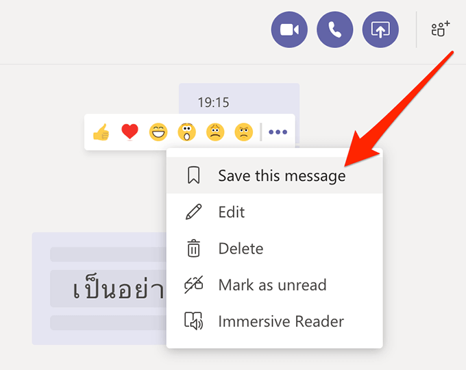 Like web browsers, Teams offers the option to save messages in a separate location. That way you can quickly get to them when you want without having to scroll through the entire conversation. * Find the message you want to save for later reading in any of your conversations.