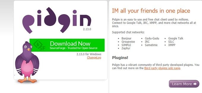 Pidgin is a super-versatile instant messaging app that lets you plug in a long list of customizations and use many different IM services. It’s completely free, small to download and doesn’t use up a noticeable amount of system resources.