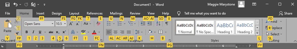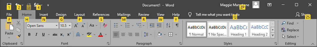 For example, press Alt to display the Key Tips for the tabs on the Ribbon. Then, combine Alt with the shortcut for a specific tab. Pressing Alt + N will take you to the Insert tab. From there, you’ll see the Key Tips for the options on the Insert tab. Simply type the letter(s) for the tool or option you want.