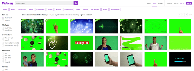 A user-submitted stock site, Pexels offers thousands of creative resources. Everything is free to use, royalty-free, and attribution-free. It’s always nice to give credit to the creator though. The number of straight green screen effects is a bit limited, but there are a lot of backgrounds designed for use with a green screen.