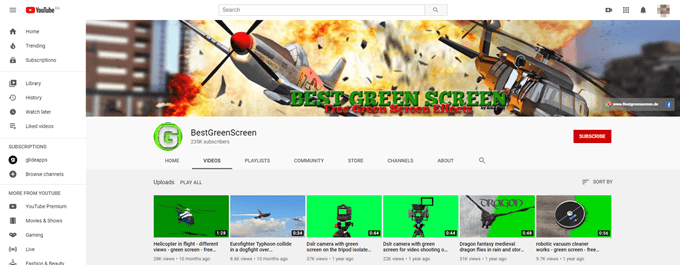There are dozens, maybe hundreds of YouTube channels dedicated to providing free green screen special effects. Some of the bigger channels include Green Screen Animation, Free Green HD, HD Green Screen, and BestGreenScreen.