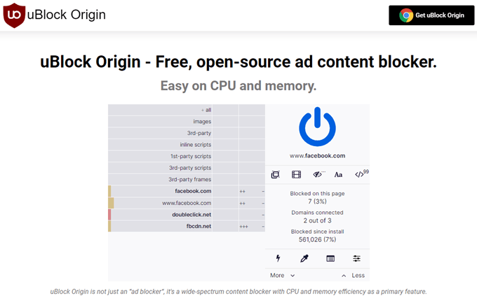 uBlock Origin is another open-source adblocker, that claims to be, “a wide-spectrum content blocker with CPU and memory efficiency as a primary feature.” What they’re saying is that other adblockers may use more resources and slow your computer down. We were unable to test that, as it was beyond the scope of this article.
