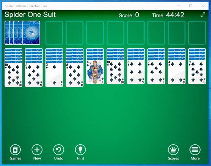 Fans of Spider Solitaire, the variant to the standard Klondike Solitaire card game, will get a lot of enjoyment out of the Spider Solitaire Collection. Collection is the right word to use, as this game offers four different Spider Solitaire games for you to try.