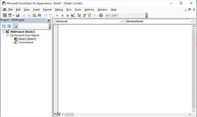 - This will open the VBA editor window where you can type the code you’ll learn in the next few sections.