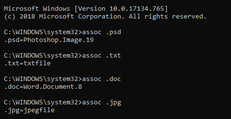 If you ever need a list of all applications that can open a specific file type, ASSOC can help with that.