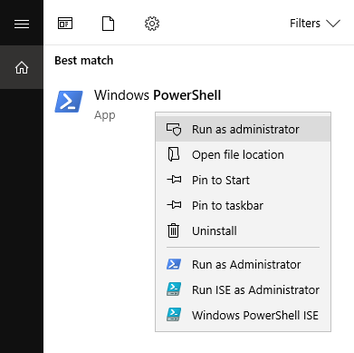 Some commands require you to open either of the programs as an administrator. To do so, right click on the app and select Run as Administrator. We will be using Windows Powershell in the following examples.