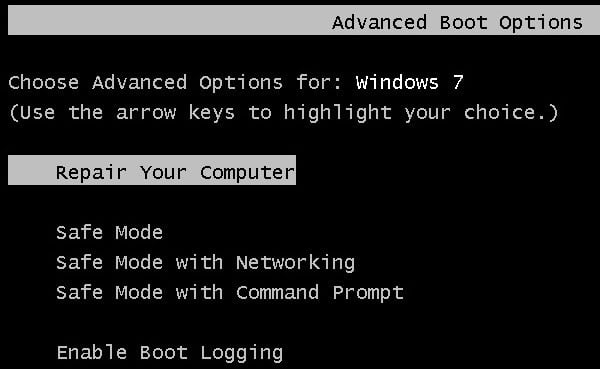 Note that if you are unable to load the boot options using F8, you may have to use a System Repair Disc. You can create a repair disc on any Windows 7 PC by clicking on Start and typing in system repair disc.