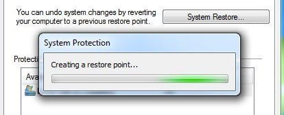 Click on the Create button at the bottom and another dialog will pop up asking for a description. Click the Create button and the restore point will be created.