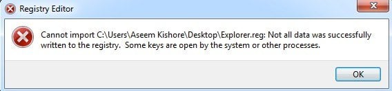 Again, I don’t recommend backing up the entire registry in this manner as you’ll end up getting a** Cannot import** error when trying to import the file back.