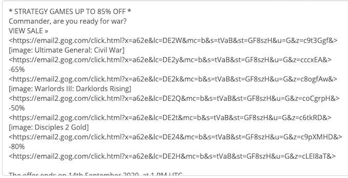 For example, fans of GOG.com might want to be notified when a game goes on sale. All you have to do is forward the sales newsletter to the parser and set up a dedicated alert. Emails do not have to be identical in format, but it helps if the sender uses a similar format each time.