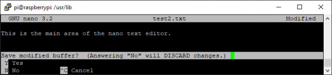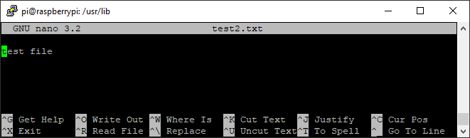 To save a file, press ctrl+o. If you want, you can change the file name. Pressing Enter will save the file. If you want to exit, press ctrl+x. If you exit and there are changes you haven’t saved, it’ll ask you if you want to save them. Choose to save by entering y and pressing **Enter. **Or you can enter n and press Enter to discard the changes.