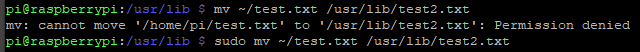 By the way, you can also rename the file *while *you’re moving it. Enter mv ~/test.txt /usr/lib/test2.txt. In this example, we’ve renamed the text.txt file to test2.txt and moved it from the home directory to the **usr/lib **folder.