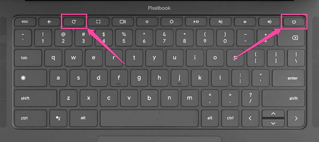 You can also initiate a hardware reset using the Back + Refresh + Power keyboard shortcut. Turn off your Chromebook and press the three buttons for at least 10 seconds to perform the hardware reset.
