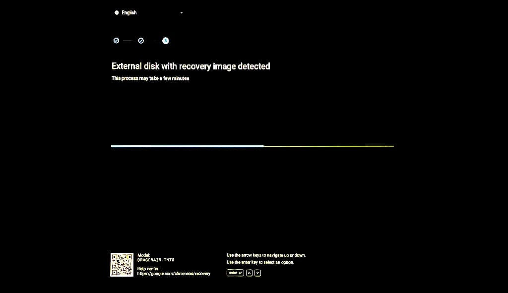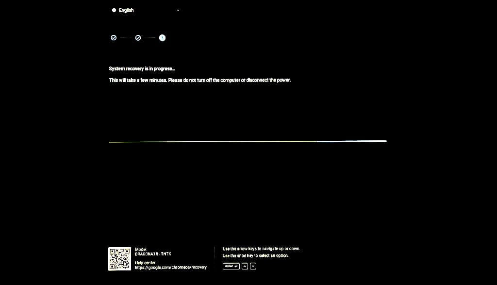 Connect your Chromebook to a power source when the system recovery commences and throughout the recovery process.