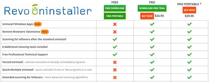 Revo is simple to use. Download the portable version from Revo’s website. There are three versions available — Free, Pro (for single desktops, not portable), and Pro Portable (unlimited computers, suitable for USB drives). The free version has the most basic features and should be enough for most users.