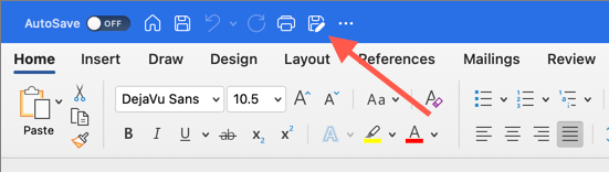 - Select Save As on the Word title bar. If you don’t see the button, choose the Customize Quick Access Toolbar button (icon with three dots) and select Save As to unhide it. Or, open the Mac’s menu bar and choose File > Save As.