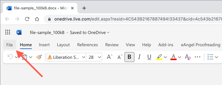 - Open the document in Word Online.