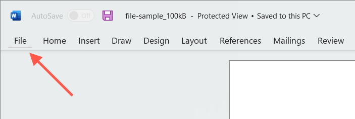 - Select the File tab on the left corner of the Word window.