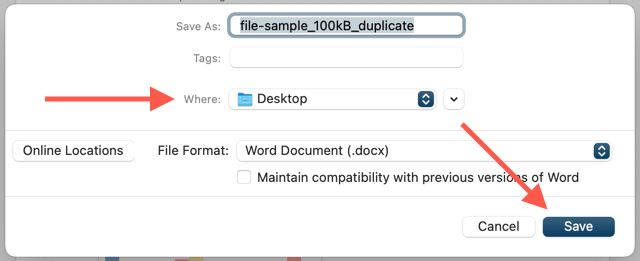 Save Word Document as a Copy on Mac