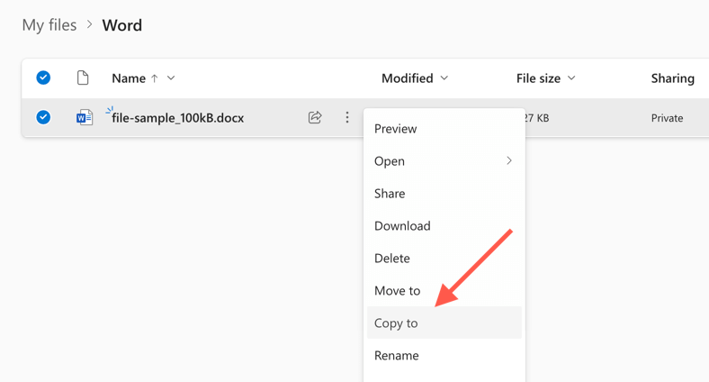 - Select More options (button with three dots) next to the document and select Copy to.