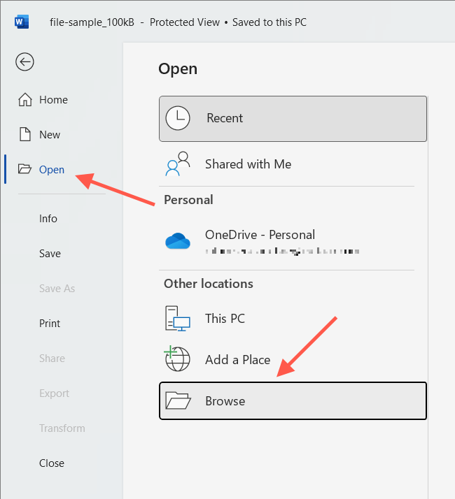 If you can’t find the document on the Recent list, you can open a copy via Word’s Open dialog. This action automatically saves a copy to its original location but only works if the file’s on local storage. To do that: