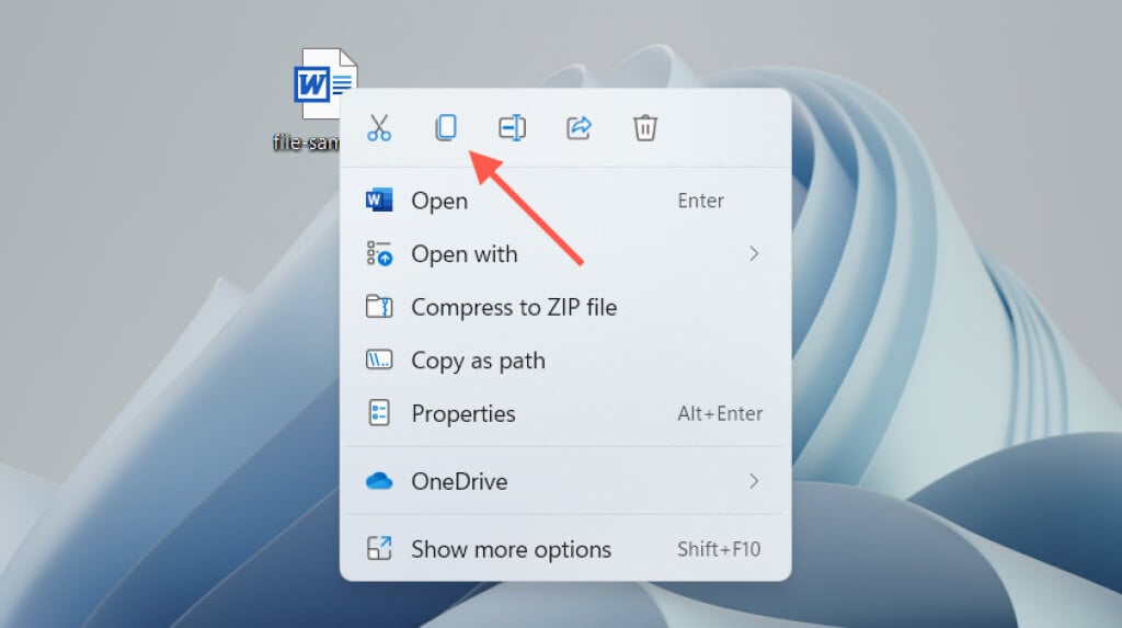 - Use the Ctrl + C keyboard shortcut to copy the file to the Windows clipboard. Or, right-click and select Copy.
