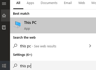 To do it, first open the Start menu and type **PC **and click on This PC when it appears in the search results.