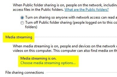 Now scroll down to the Media Streaming section and click on the Choose media streaming options link.