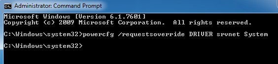 You’ll need to open an administrative command prompt and type in the following command: powercfg /requestsoverride DRIVER srvnet System