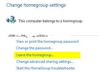 To leave a HomeGroup, open Control Panel and click on HomeGroup. Then scroll down and click on the Leave the homegroup link. If you really need to use a HomeGroup, then you can also leave it and create a new one on all of the computers that are part of the HomeGroup. This will also reset it and hopefully fix the issue. ### Method 2 – Media Streaming