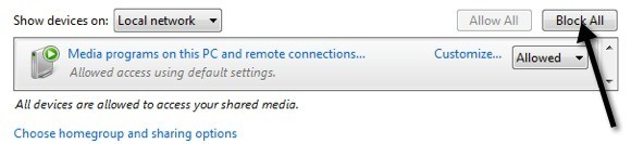 Now go ahead and click on the** Block All** button at the top right. Then click Ok at the bottom and that will turn off media streaming.