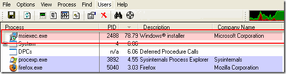 The picture above is actually from Process Explorer, not Task Manager, but it will have the same name there also. Once you kill the process, the password prompt disappears and the uninstall continues! Msiexec.exe is the Windows Installer utility that is invoked whenever you install or uninstall a program.
