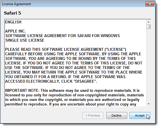 The License Agreement dialog box displays. Read through the license agreement and click Accept.
