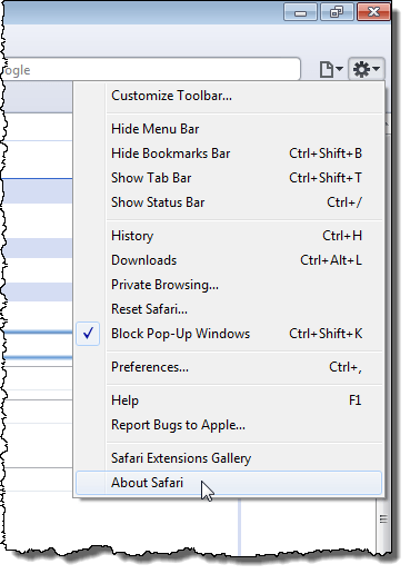 You can easily check which version of Safari is installed. To view the current version of Safari, click the gear button in the upper, right corner of the Safari window, and select About Safari from the drop-down menu.