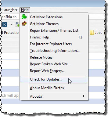 Every web browser provides a different way of checking for updates, most of them fairly easy and found within the browser itself. Firefox allows you to easily check for updates through the Help menu.