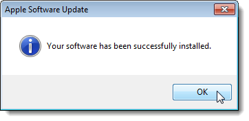 When the installation is finished, a dialog box displays the status of the installation. Click OK to return to the Apple Software Update dialog box.