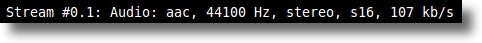 The above information tells us the following things. In order, it tells us that the stream is encoded using the AAC encoder, that it has a frequency of 44100 Hz (the correct sampling rate for burning to CD), that it is stereo, uses 16-bit samples, and has a bitrate of 107 kb/s. For extracting purposes, we’re most interested that the file has AAC audio. Knowing this, all we need to do is type the following command: