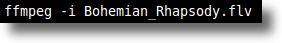 The above command is a bit of a hack, and you’ll get errors, but don’t worry. What we’ve actually told ffmpeg is that Bohemian_Rhapsody.flv is the input file. That’s what the “-i” tells ffmpeg.