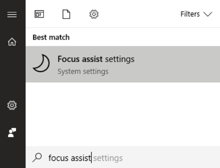 If you want to switch it on yourself while doing other activities, you need to head over to the app itself. Just click on the Start Menu and type Focus Assist.