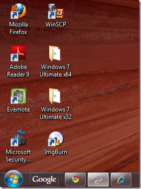 Here’s a screenshot with the new smaller taskbar in comparison to the large desktop icons.