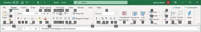 We’re using Excel 365 and as you can see, hitting the ALT button makes numerous little tooltips pop up. Each of these represents the next letter you can press to access the corresponding function. So you don’t have to worry about perfectly memorizing these shortcuts at all. Once you’ve practiced them a few times, these shortcut prompts will always help remind you of what to do next.