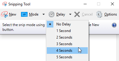 You can also use this method to capture any right-click context menus in Windows. The method above works well, but you can also use a different method that involves adding a delay. Simply click on the Delay button and give yourself a few seconds before the capture begins.