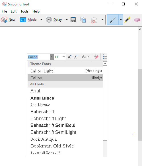 Next go to your application that has the popup menu that you’re after. In this case, we’ll capture the font popup menu that drops down when you click on the Current Font display in Word. Click on the Current Font to make the font window drop down.
