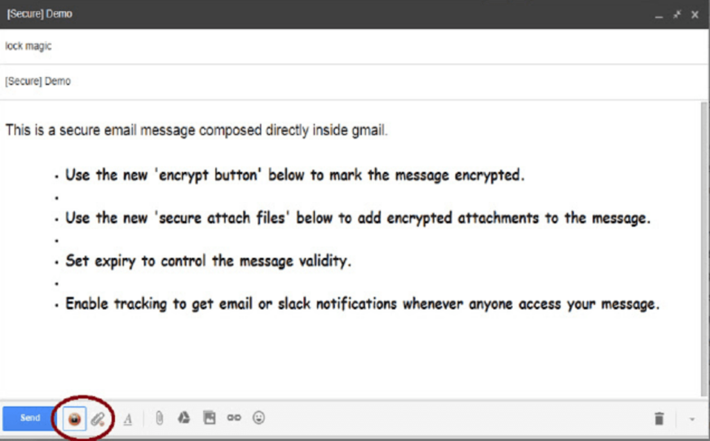 Lockmagic uses a much more discreet button for encryption, placing it next to the normal Send button. This makes it ideal for those who only need to occasionally encrypt a message.