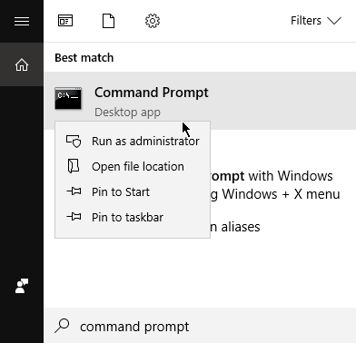 Run Search and type Command Prompt. Find Command Prompt from the results, right-click it, then select Run as Administrator.