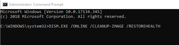 In the Command Prompt, type the following command then press enter: DISM.EXE /ONLINE /CLEANUP-IMAGE /RESTOREHEALTH
