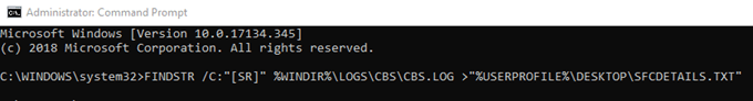 Open an elevated Command Prompt and type the following command: FINDSTR /C:"[SR]" %WINDIR%\LOGS\CBS\CBS.LOG >"%USERPROFILE%\DESKTOP\SFCDETAILS.TXT"